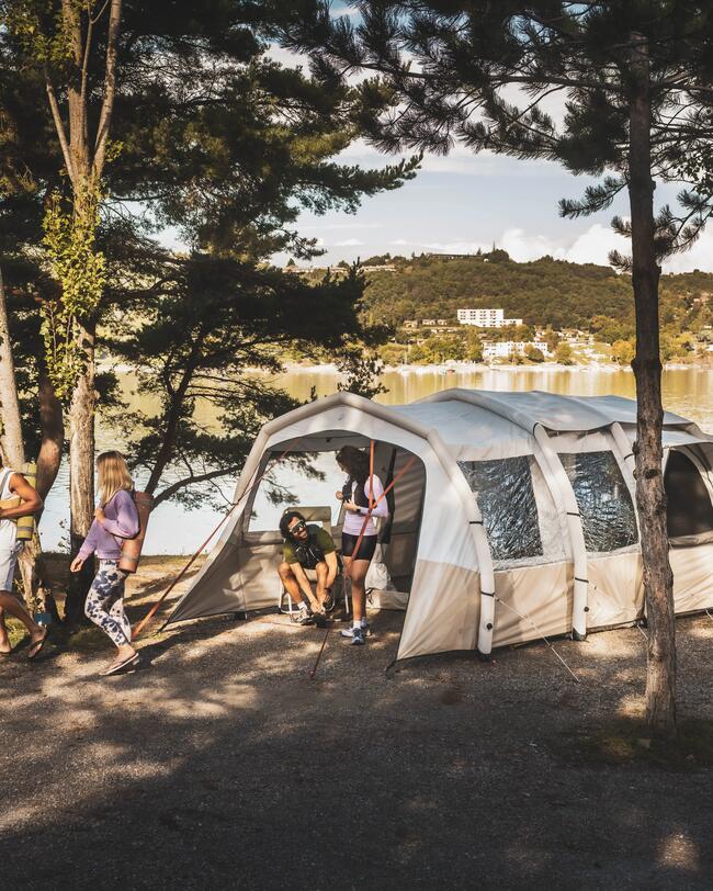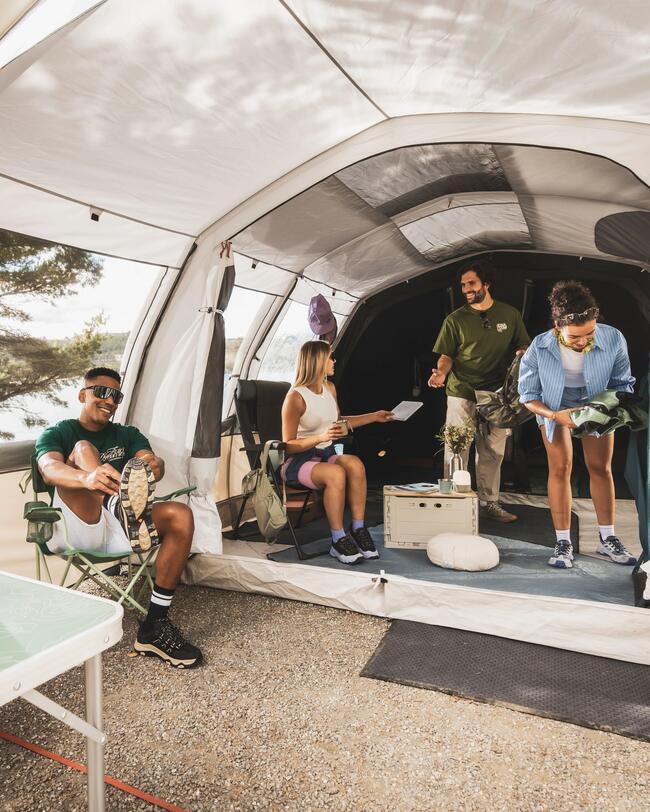 Graças à sua estrutura inflável tudo-em-um e quartos pré-montados, sua barraca fica pronta num instante.
