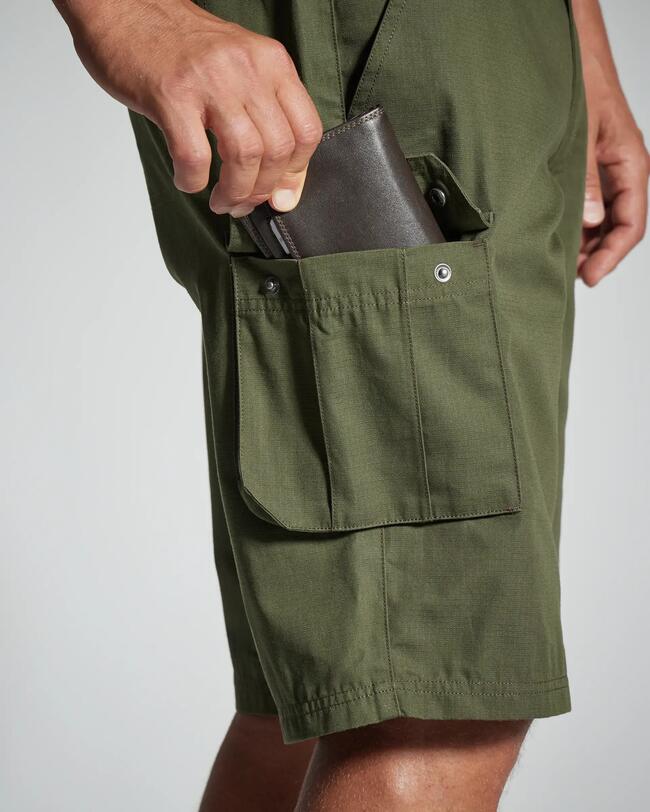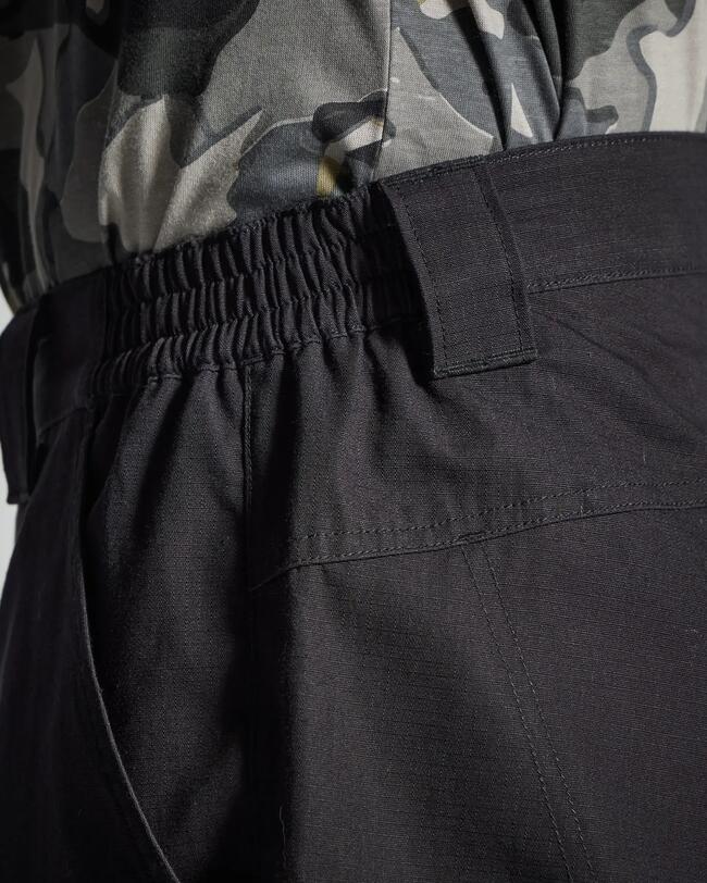 Tecido em algodão Ripstop 250 g/m² (estrutura tecida em lona de paraquedas). Dupla costura de montagem e ponto de remate em todas as zonas de tração: aberturas de bolsos, presilhas, parte inferior da braguilha. Reforço nos pespontos do fecho da braguilha. Linha de costura altamente resistente: 4 pontos/cm.
