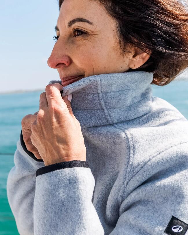 Fleece espesso (cerca de 200 g/m²) que garante bom aquecimento. Ideal como segunda camada sob a jaqueta ou sozinha em clima fresco.