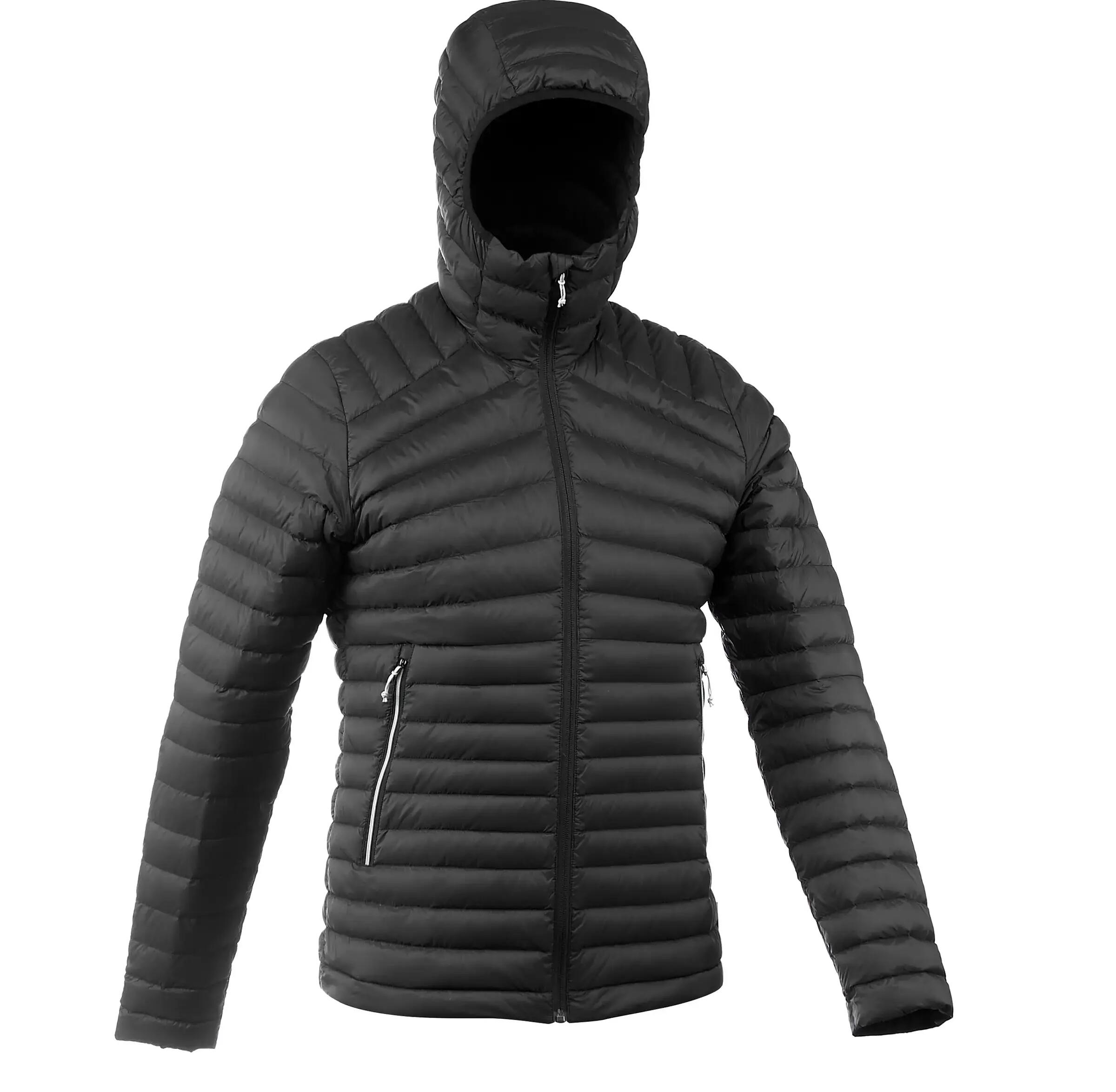 As jaquetas de plumas podem ser comprimidas dentro do próprio bolso durante, por exemplo, uma expedição de trekking.