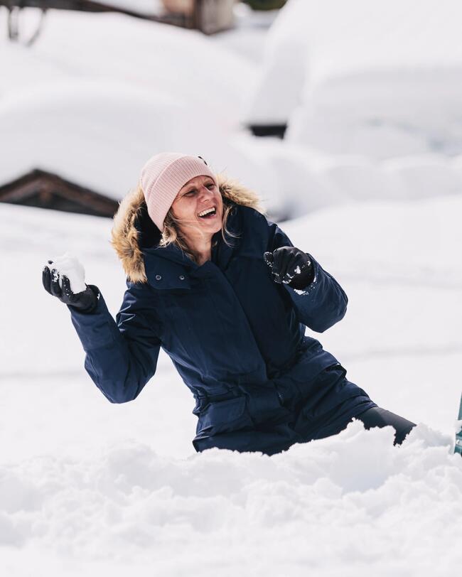 Em dias de neve ou gelo, o capuz e o ajuste na cintura garantem proteção extra contra o frio e o vento.
