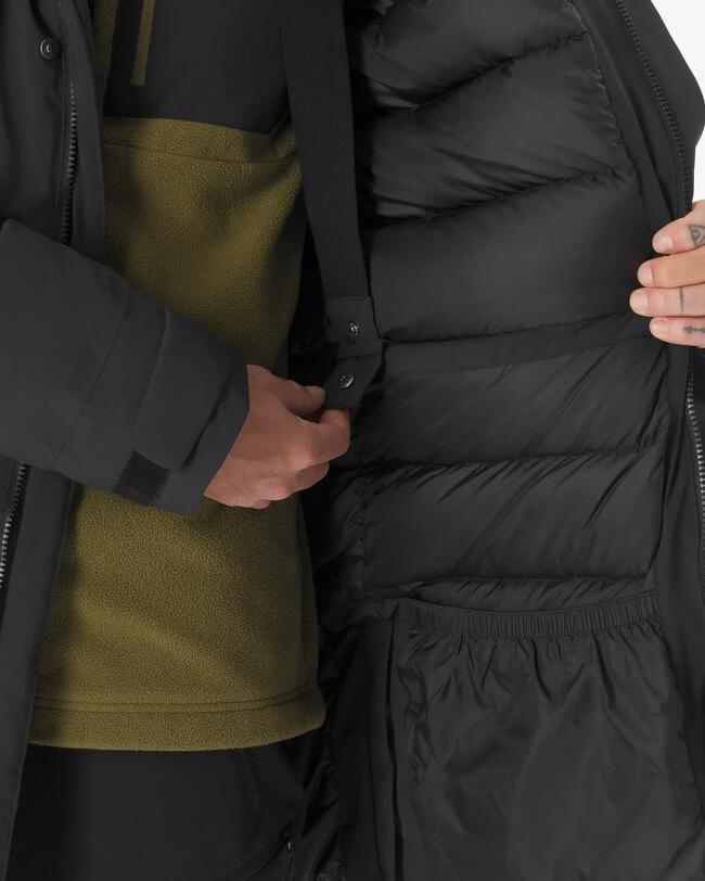 Quando o esforço aquece o corpo ou o sol está brilhando, não há necessidade de tirar a parka:Graças às alças de ombro integradas, ele pode ser usado sobre o ombro como uma mochila.Você fica livre para se movimentar, sem sentir muito calor ou com as mãos muito ocupadas.