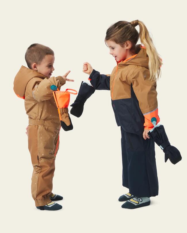 Use o sistema de clipe para prender as luvas às mangas do traje ou jaqueta de esqui Decathlon de 1 a 5 anos de idade de seu filho.Graças ao design lúdico desse acessório, seu filho em busca de independência poderá prender as luvas nas mangas sem cometer erros!Basta combinar as cores e as cabeças dos animais se formarão.Suas luvas estarão sempre à mão, e nas mãos certas!
