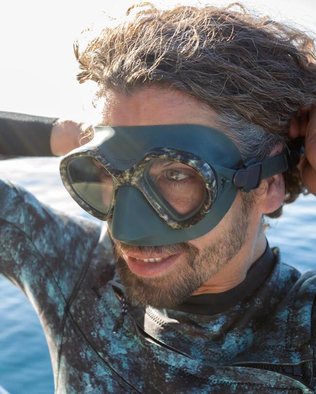 O aperto da máscara ocorre durante a descida. Assim que se mergulha, o volume de ar retido na máscara é reduzido. Consequentemente, a saia pressiona o rosto como uma ventosa. Para evitar este fenómeno, que é doloroso para os olhos e pode provocar um barotrauma, é importante equilibrar a pressão interna da máscara, soprando ligeiramente pelo nariz. O ar é tão precioso nestes esporte que a ação de compensação deve ser mínima.