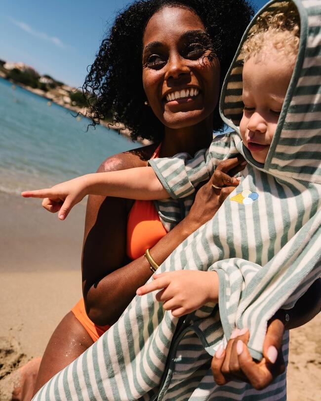 Ajuste o poncho de banho facilmente, graças aos botões de pressão nas laterais.