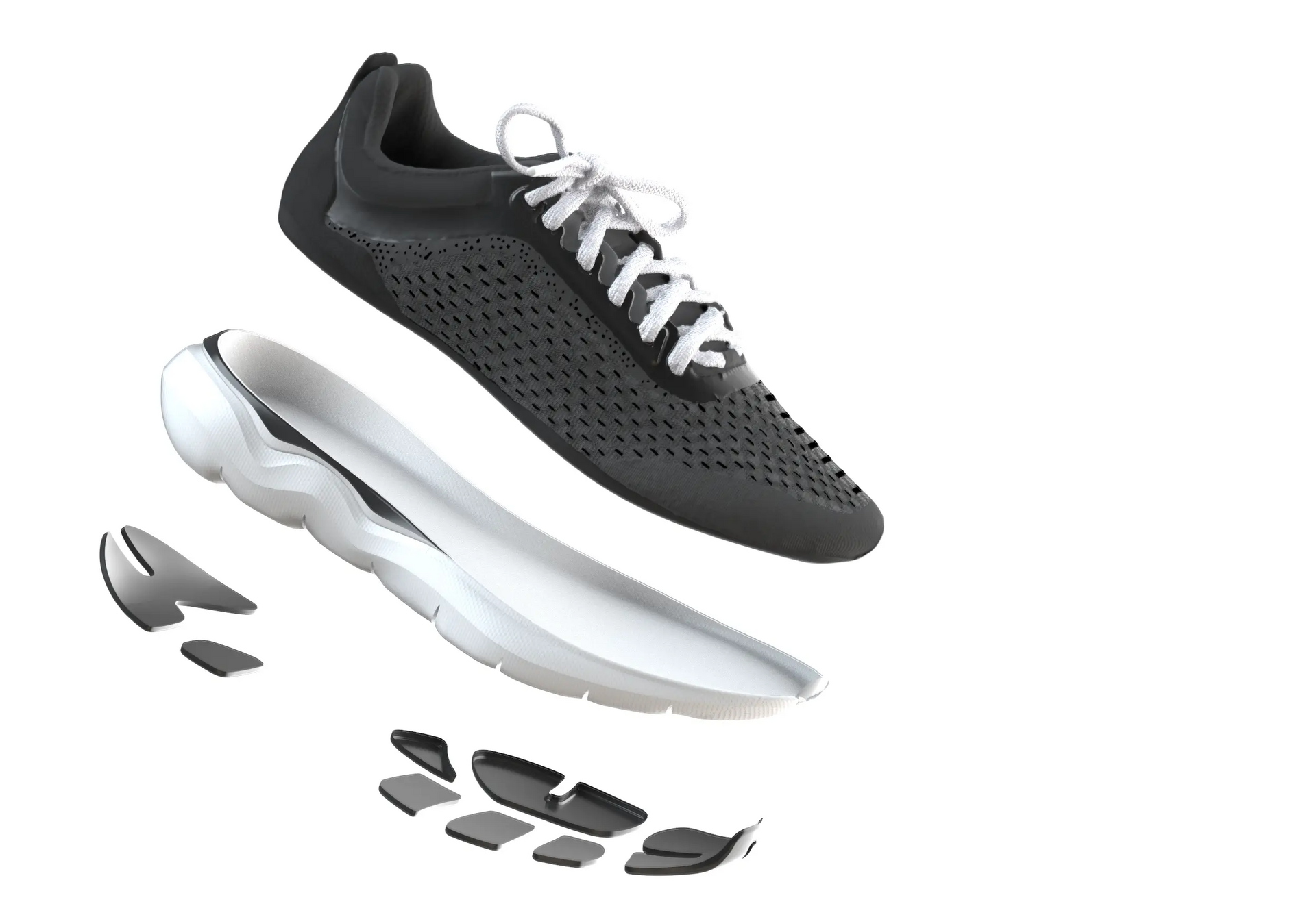 Solado externo: 30% - Borracha - Sintética70% - Acetato etileno de viníl (EVA). Cobertura de: 95% - Poliéster (PES) - Reciclado5% - Poliuretano termoplástico (TPU). Forração e palmilha de: 100% - Poliéster (PES) - Reciclado.
